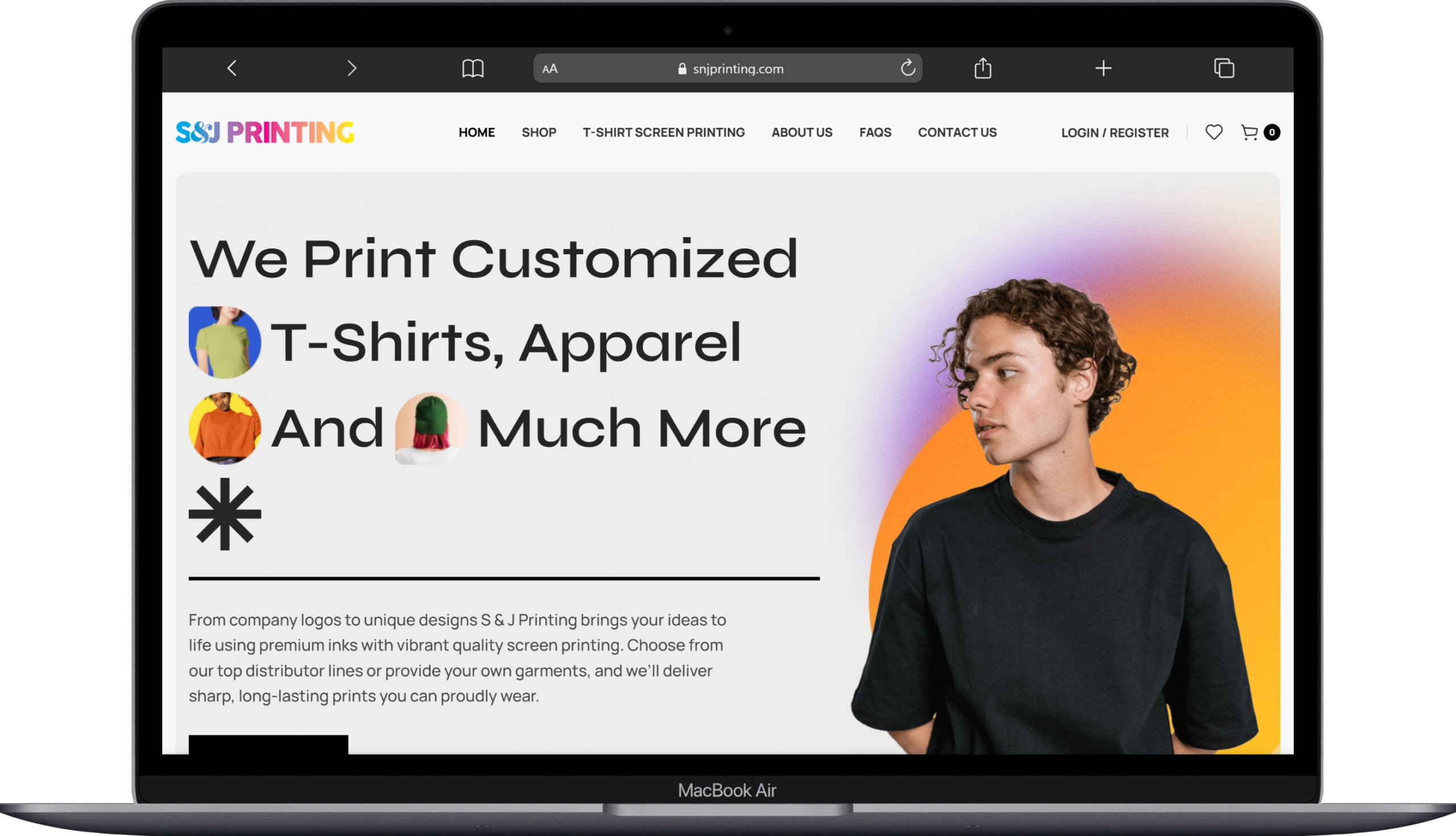 A professional website designed for S&J Printing to showcase custom t-shirts, apparel, and printing services while building trust and generating consistent customer inquiries.
